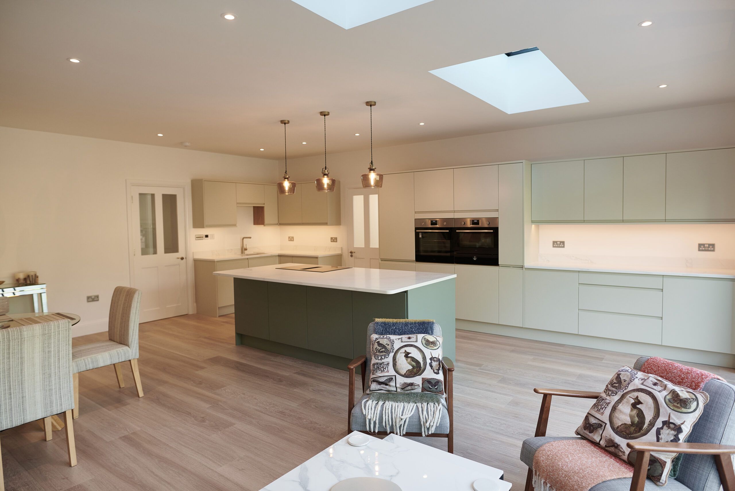 The upgraded ground floor now features a high-specification kitchen, practical utility space, and a bright, open dining area perfect for entertaining. Large openings and thoughtful layout changes bring in natural light and connect the extension seamlessly to the original structure.